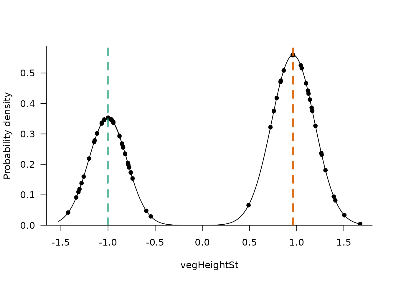 dat <- data.frame(vegHeight, precip, vegHeightSt, precipSt)